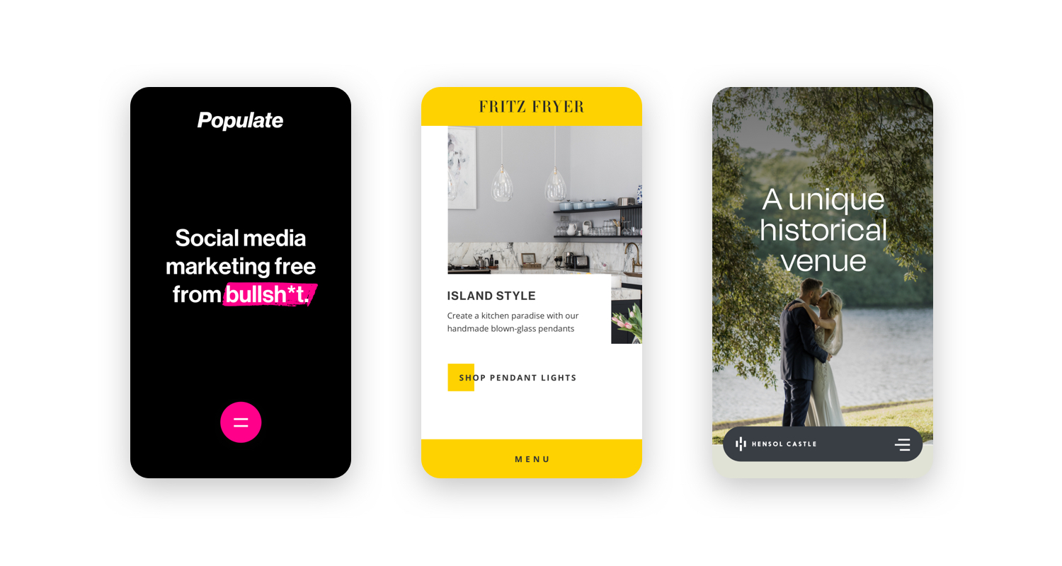 The solution is as simple as moving key actions down the screen. App and mobile operating systems have been using this logic for years, mainly with a tap bar approach or simply having your most useful apps at the bottom closest to your thumb. (Side note: if you haven’t arranged your most-used apps towards the bottom of your home screen on your phone, do it now!). A tap bar prioritises three to five of the most common actions and lists them in a row. It’s likely you use these daily, however, tap bars are limited and don’t support secondary navigation items. That’s why hybrid solutions with tabs and a burger menu are best suited for sites with huge amounts of pages. For mobile navigation, the single burger menu positioned towards the bottom is still the best balance of flexibility and uncluttered UI (user interface) for most sites.