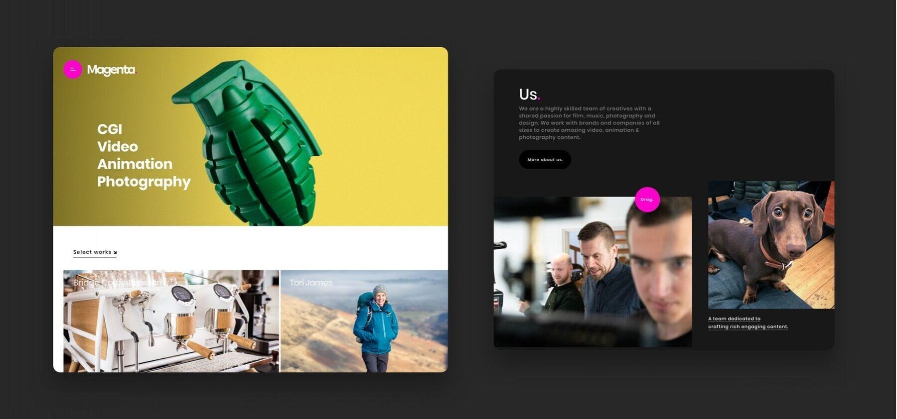 Magenta is a highly skilled team of creatives with a shared passion for film, music, photography and design. They work with brands and companies of all sizes to create amazing video, animation & photography content. We’re big fans of their work at Spindogs so were thrilled to be asked to re-design and build their old website which they felt was no longer reflecting their brand and expertise.