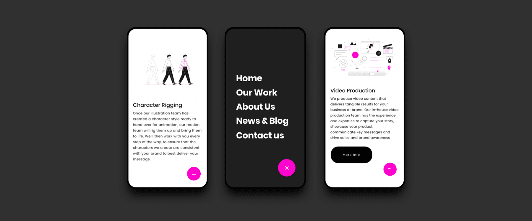 Magenta has been specialising in photography since their humble beginnings over fourteen years ago. As times and trends changed, they saw a huge increase in demand for CGI, videography and animation, which now make up around 60% of their once photography heavy workload and it was important that this was reflected in the new website.