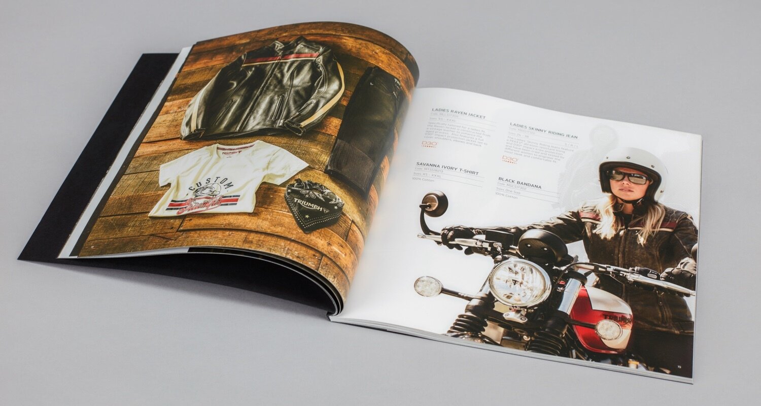 We quickly identified the route we wanted to pursue and, with Triumph on board, we launched the finished catalogue showcasing market-leading and outstanding design. We advised on print specifics of the brochure, such as weight and finish, and the exceptional quality of the finished article marries up with both Triumph’s reputation and the expectations of its customers.